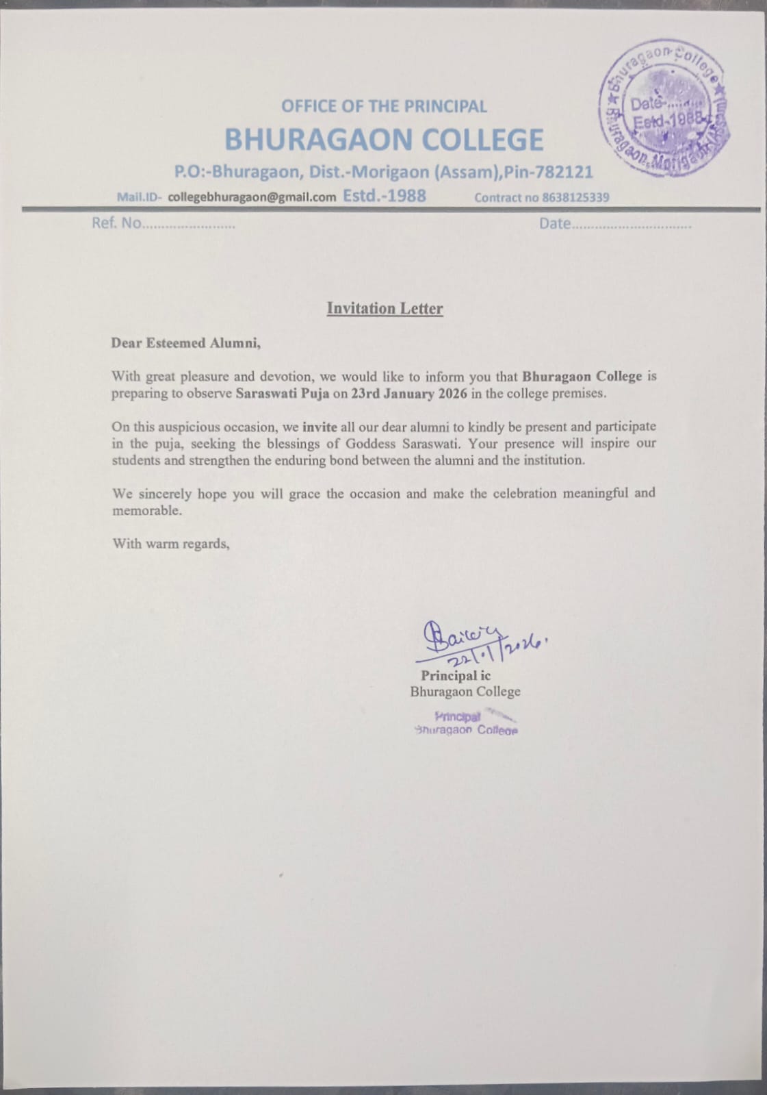Bhuragaon College is one of the pioneer higher education institutions in the district of Morigaon, Assam. The College is located to the north, approximately 20 kilometers, from the district headquarters of Morigaon, lying quite adjacent to the Brahmaputra River which is hardly 300 meters away. Despite having innumerable hurdles and financial setbacks, the College can keep pace with the changing educational scenario that augments promises for aspirants to a new dawn of knowledge every day and every moment. The College was established on 20th February 1988. It has 20 bighas of land to accommodate any spacious educational infrastructure with the serene atmosphere that flows within from the longest northeastern river, the Brahmaputra. The College is working as a catalyst in offering a platform to cater to the social, educational, and psychological needs of the region which is marked by its multi-lingual and multi-cultural nature. Established some 35 years ago when barely there were more than two higher education institutions in Morigaon district, Bhuragaon College has been continuously and relentlessly developing and has been trying to keep its promises to disseminate knowledge and filter that to wisdom among every young aspirant to this beautiful abode for learning. The College would not have been in its present status, had there been no contributions by the then-learning enthusiasts such as the Late Upendra Narayan Singh, Anand Mohan, Late Abdul Jalil, Manabendra Saha, Mihiram Bora, Sri Madharam kakati, and lot more others all of whose names I cannot mention here because of the paucity of space, but can remember with appropriate respect and reverence. A college that is haunted more than twice by the flash-flood of the Brahmaputra River which makes it impossible for any greeneries to grow on the campus, and still not to falter but to stand straight, is sufficient to prove its priceless efforts to sacrifice for a mission of extending its support to the needy who are more often from the extremely poorer section of the society. The College though in a humble stage today even, yet it sustains to operate with its examination center and offers almost all the Arts subjects such as English, Assamese, Economics, Education, Political Science, History that have Honours courses, and Philosophy, Geography, and Arabic which have Regular or General courses. Besides having these, our college also takes its pleasure to announce the introduction of Distance Learning courses from The IDOL which run parallel with Regular courses under Gauhati University. Besides, our college offers the Scouts & Guides program as a certificate course to help secure government jobs for young aspirants.